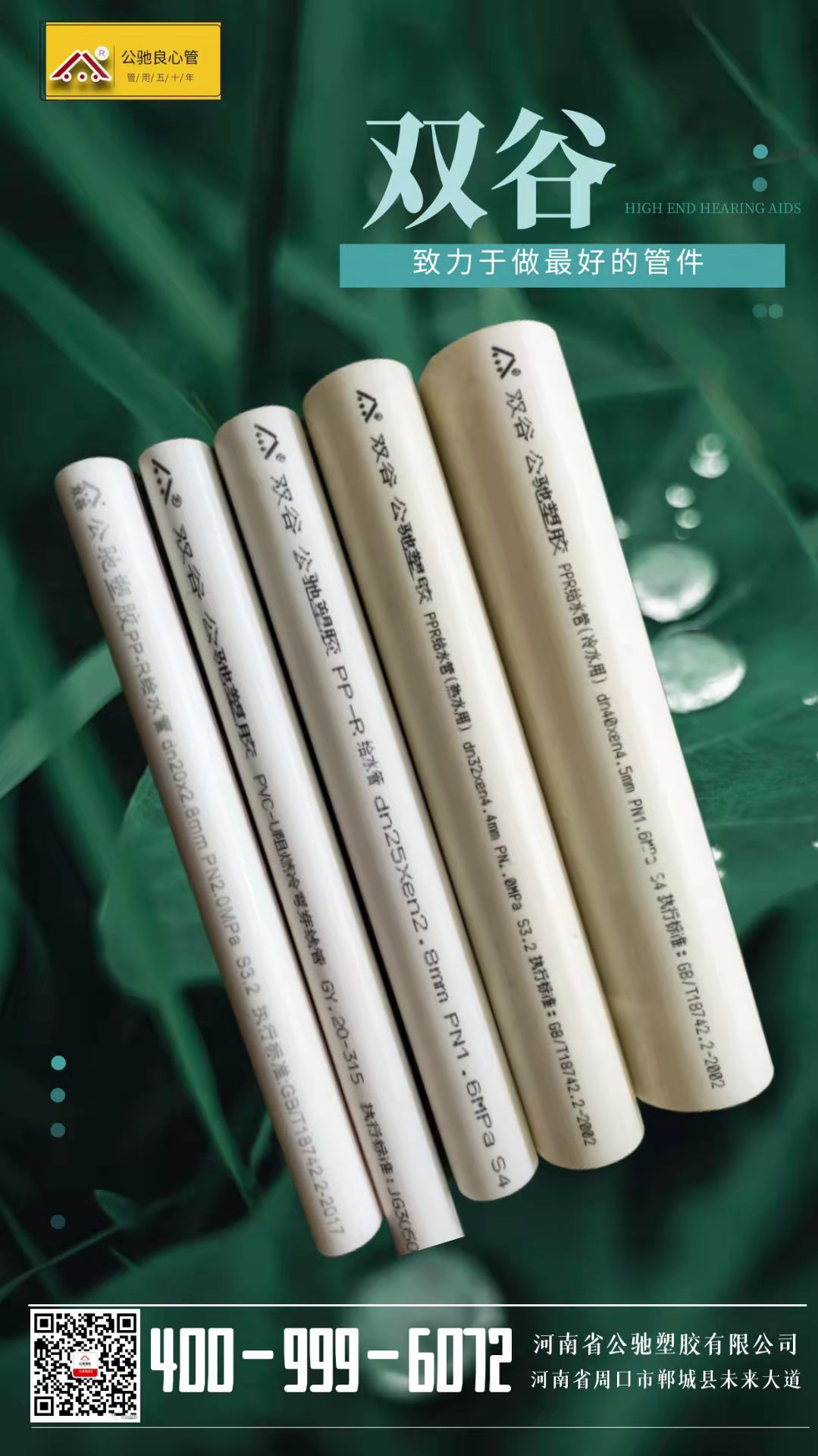 河南省公馳塑膠有限公司主要產(chǎn)品有PE給水管材、管件;HDPE排水管;PE、MPP、CPVC、電力穿線(xiàn)管;檢查井;PVC-U給水、排水管材、管件;電工導(dǎo)管;PP-R給水管材、管件;PE-RT地板輻射采暖管等百余個(gè)系列,數(shù)千個(gè)品種。